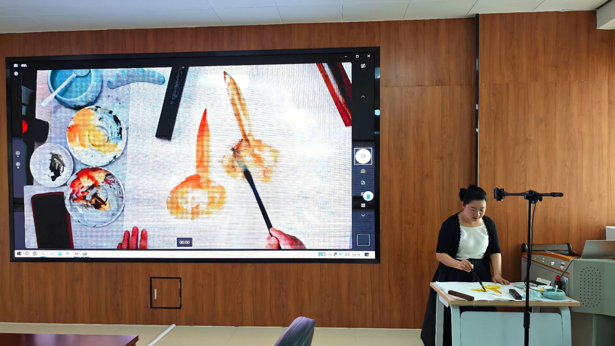 活动在热烈掌声中拉开帷幕。在示范课展示中,获得本年度“优秀教师”吴丹老师带来示范课《写意葫芦的画法》,以“以艺化人、以美润心”为主线,从笔墨技法到文化寓意层层深入,引导学生在水墨韵律中感悟传统美学精神。其课程充分体现了美育教学中“技艺传授、文化浸润、创新转化”的有机统一,展现了传统文化创造性转化的教学智慧。获得本年度“师德标兵”陆国辉老师的示范课《数智时代的设计教育转型:AI赋能下的视觉传达教学新范式》,生动演示了如何将人工智能技术与地方文化传承相结合。通过项目式融合,以新旧范式的对比,展现了“设计赋能地方发展”教学中的家国情怀、地方文化、科技应用与专业技能的创新实践,凸显了跨学科育人的前瞻性探索。