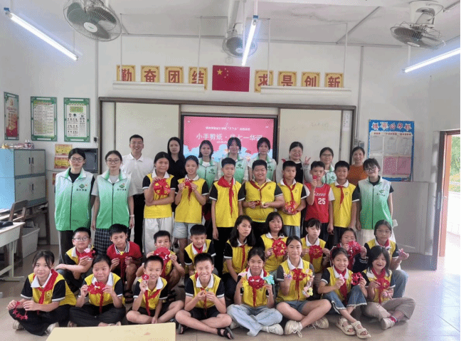 沙田镇道石村狮山小学内,“红韵传薪火,艺心绘乡情”实践团则化身“安全卫士”,通过动画短片、案例分析等生动形式,系统讲解防溺水、交通安全、森林防火知识。“遇到火灾要弯腰捂鼻!”孩子们在互动问答中牢记安全要点。团队还结合大学生活分享、红色剪纸活动,将梦想教育与爱国情怀融入实践,为乡村孩子构建起“安全+成长”的双重守护网。